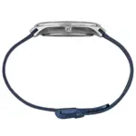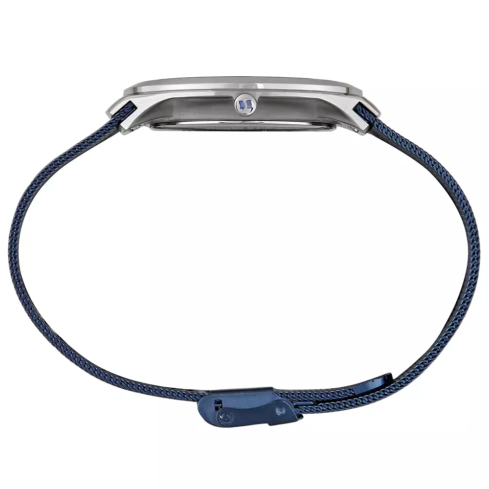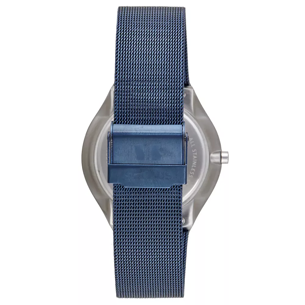 Sua caixa slim de 40mm de diâmetro e apenas 9mm de altura, feita inteiramente de aço inoxidável, se adapta confortavelmente a diversos tamanhos de pulso, proporcionando um caimento discreto e sofisticado. A pulseira, também em aço inoxidável e no estilo malha (mesh), possui 18mm de largura e um comprimento total de 24cm, conferindo um toque de refinamento ao conjunto. Este material de alta qualidade não só garante durabilidade, mas também um visual polido e contemporâneo.