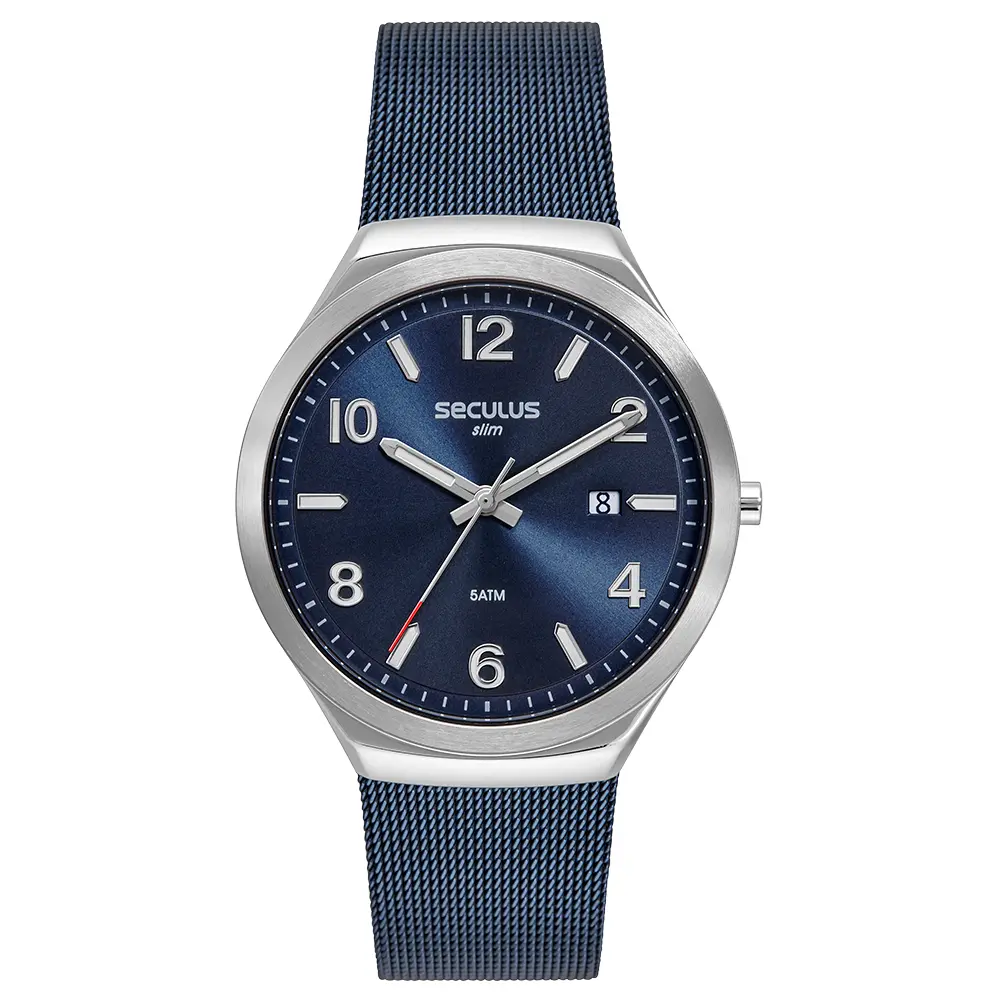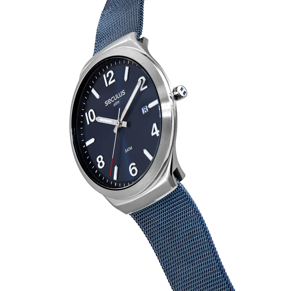 Com resistência à água de 5 ATM, este relógio é ideal para uso diário, suportando respingos e breves imersões. Seja para o ambiente de trabalho ou para eventos sociais, o Relógio Seculus Slim é a escolha perfeita para quem valoriza um acessório versátil que combina estilo e desempenho. A atenção aos detalhes, desde o visor azul até a pulseira em malha, eleva este relógio a um patamar de elegância atemporal, refletindo o bom gosto de quem o usa.